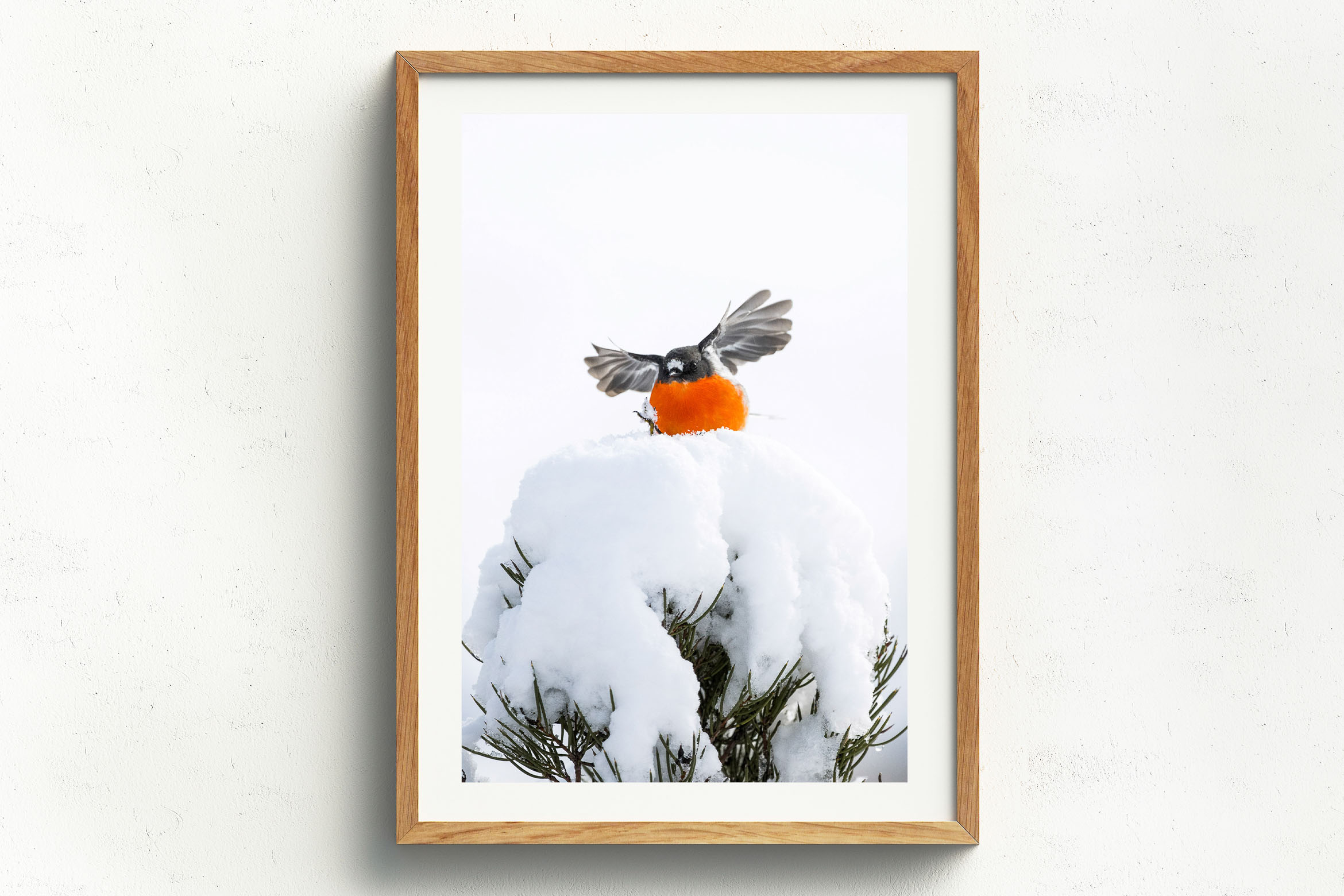For framed prints, we use archival fine art smooth rag. Our wood frames are Italian made and come in raw oak, black and white. The frame and matting board will add an extra 7″ to the overall height and width of the finished product. The signature, print title, and print number are all written in a 1″ border that separates the matt board from the image.